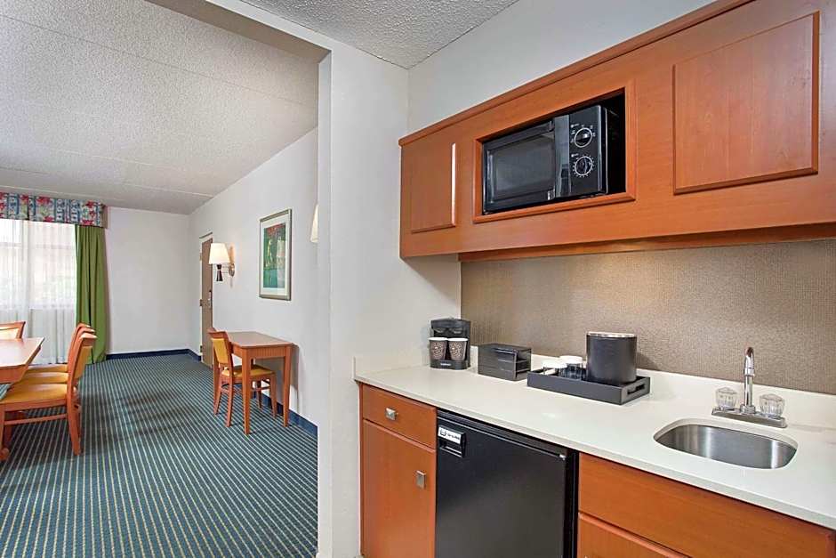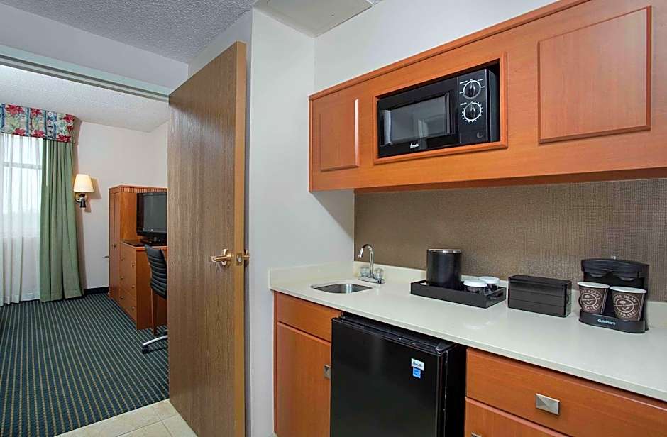 This suite features a microwave, refrigerator, cable TV, and a work desk.